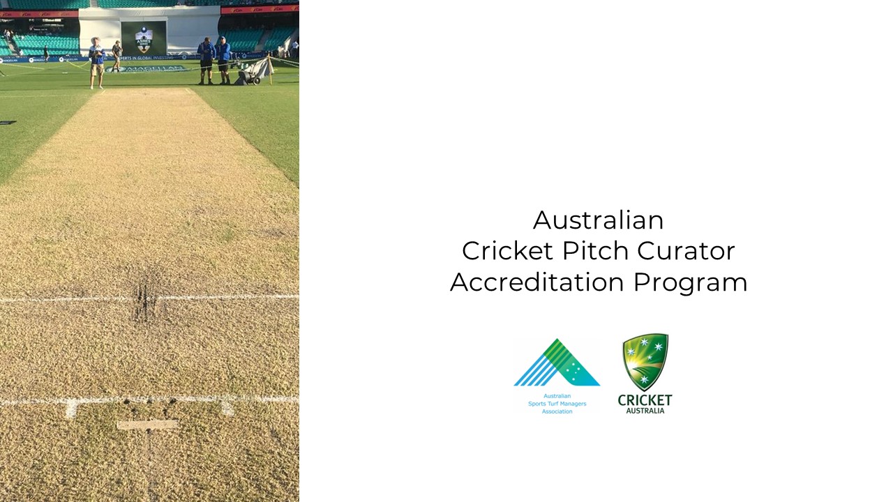 The Australian Sports Turf Managers Association Accredited Cricket Pitch Curator Program is designed to certify cricket pitch curators are skilled, knowledgeable and committed to the consistent preparation of turf surfaces. Accreditation ensures that curators meet specific criteria, introduces Accredited pathways to expand learning and development, training and support opportunities for existing curators, and importantly – to increase the talent pool and develop more quality pitch curators in Australia.